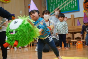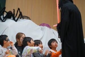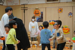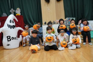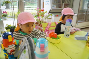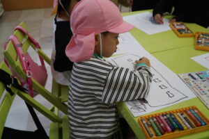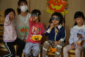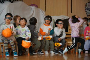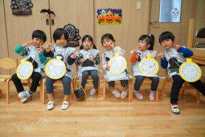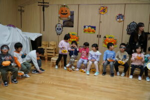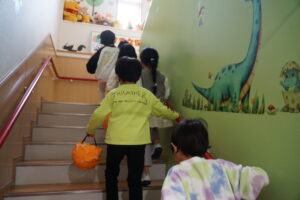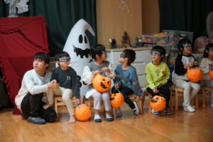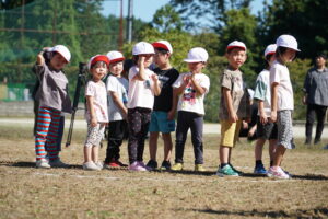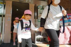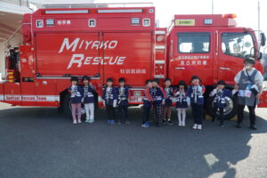 10月30日に幼年消防の活動で消防署へ体験に行ってきました。子ども達は前日から楽しみにしていた子ども達。幼年消防のはんてんを着て園バスで消防署へ。