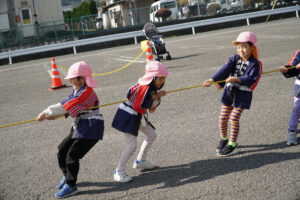 最後は水槽車と綱引き。みんなで力を合わせて引っ張りました。