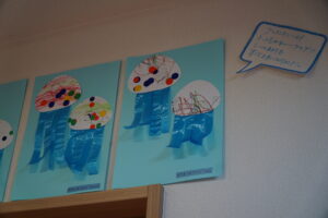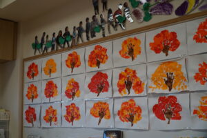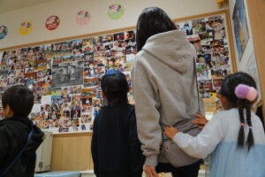 子どもたちはいつもと違う雰囲気に少し緊張しながらも、飾られた作品や写真を見て感動した様子を見せていました。写真展ではじっくりと写真を眺め、作品展では我が子の成長を感じる場面もありました。