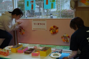 アルミホイルアートやフォトフレーム作り、リース作り、ブレスレット作りなど、子どもも大人も楽しめるブースが並びました。