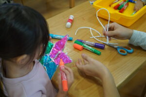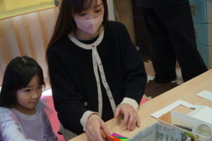 子どもたちは製作活動に取り組む際、保護者と一緒に集中して作業する姿が見られました。親子で協力しながらアイデアを形にしていく時間は、とても和やかで、笑顔にあふれていました。一つひとつの工程を丁寧に進める姿からは、ものづくりの楽しさだけでなく、親子の絆の深さも感じられました。