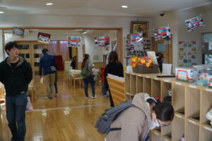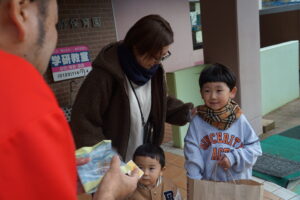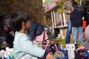 保護者会のバザーでは、品物を選びながら楽しそうに買い物をする姿も見られました。