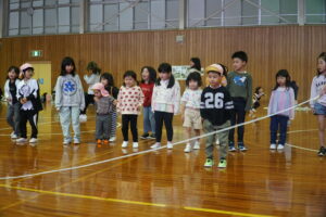 自由遊びには長縄やドッチボール、フラフープなどをして、