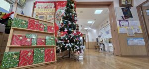寄贈された絵本がクリスマスを感じさせる素敵な包みに包まれていたこともあり、ワクワクした笑顔が広がっていました。代表の子どもが大切そうに受け取る姿も印象的でした。