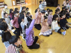 お名前と何歳になったかを発表して、お友達からの質問には緊張しながらも元気に答えていました。