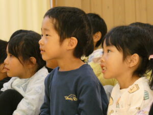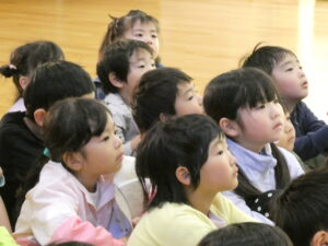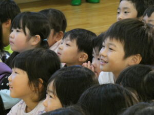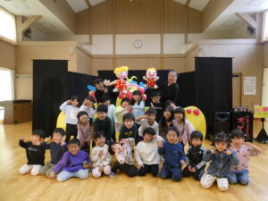 今日は人形劇「ぼっけ座」の方々が津軽石公民館に来てくださり、3歳児から5歳児で見に行ってきました!✨見慣れない劇の世界観に子どもたちも始まる前からくぎ付け・・・♡