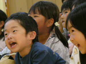 繰り返しの言葉遊びや面白い展開に声を出しながら笑う子ども達😊