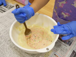 みんなボウルからこぼれないように丁寧に混ぜていましたよ✨