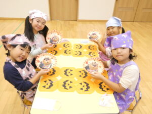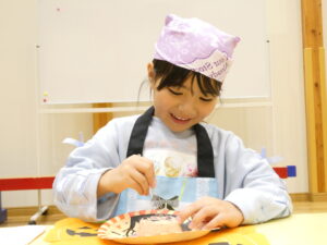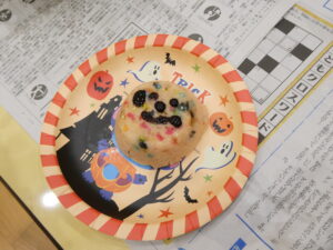 お友だちと描いたお顔を見せ合いながらとニコニコで食べていました😋
