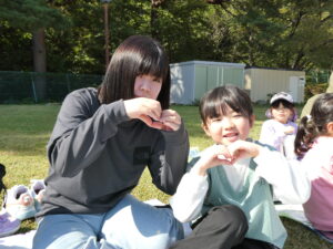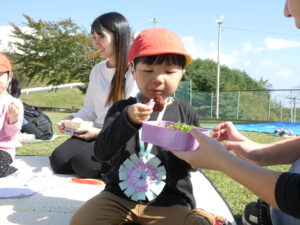 メダルをもらった後は、待ちに待ったお弁当の時間!🍙良い天気の中、みんなでレジャーシートを敷き美味しいご飯を頬張る子ども達でした😊