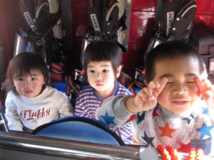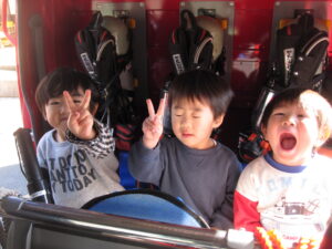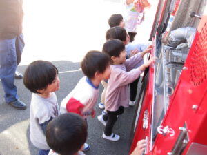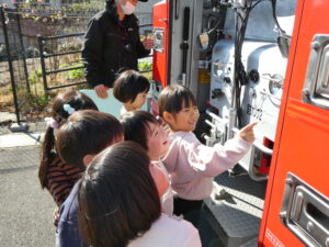 消防車の中で写真を撮ったり、「これな~に?」と質問したり興味津々の子どもたち!
