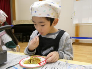 「おうちでも作りたい!」とお話しながらパクパク食べ進め、おかわりするお友だちもいましたよ😋
