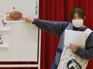 お製作の紹介が終わった後は先生が節分の由来や食べ物を紹介し、クイズを行いました😊