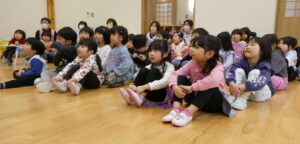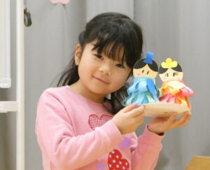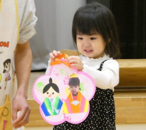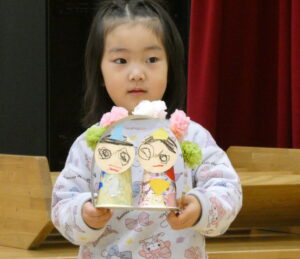 まずは、各クラスで作ったひな祭りの製作を紹介してもらいました。