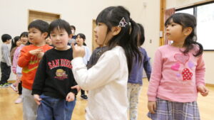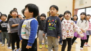 少し緊張しながらも、前に出て、先生の質問にしっかり答える子どもたち。