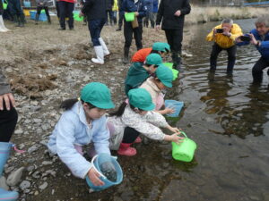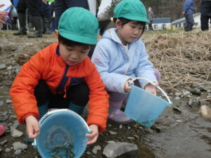 鮭の赤ちゃんに素敵なエールを送りながら送りだした子どもたち✨鮭の赤ちゃんのようにみんなも素敵なお兄さんお姉さんになろうね!✨